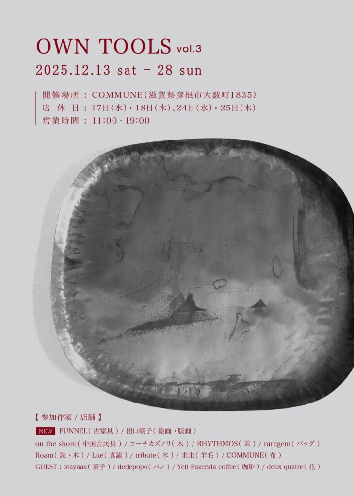 滋賀・彦根市のCOMMUNEさんの企画展、OWN TOOLS vol.3に参加いたします。